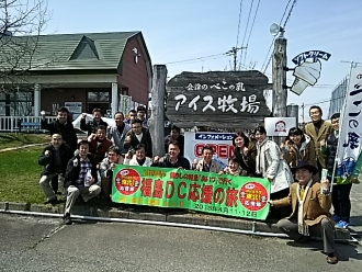 4月12日(日)JR上野駅長号のみなさまが 福島DC応援の旅で工場見学! 小さいお子様から大人の方も楽しく牛乳について まなぶことができました♪ 店長:渡部