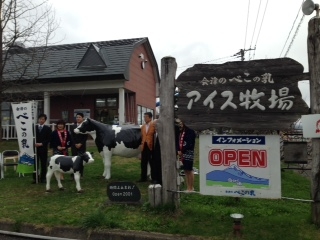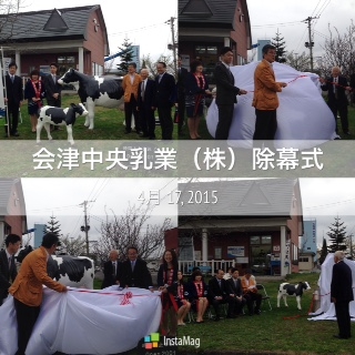 4月17日(金) あいにくのお天気でしたが、 ヤマラクフーズ様よりいただいた 牛の親子のレプリカの除幕式無事おこなわれました!