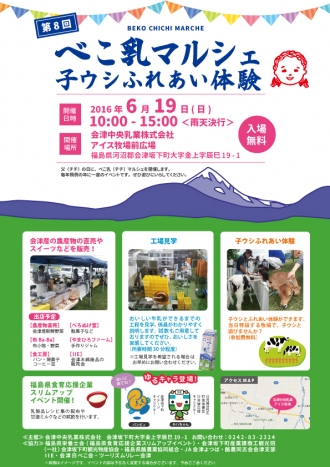 6月は牛乳月間です。 とゆうことで・・・ 今年も! 日時:6月19日(日)10時~15時 場所:アイス牧場(直売所) 第8回べこ乳マルシェ 子ウシふれあい体験を開催致します。 ぜひこの機会にかわいい子ウシとふれあってみてくださいね。 おいしいスイーツなどもそろえて お待ちしております。