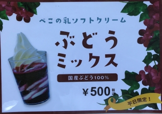本日よりアイス牧場にて冬期間平日限定。 国産ぶどう100%使用 べこの乳ソフトクリーム ぶどうミックス が新発売しました。 ⚠平日限定ですのでお気を付けください。 これからますます寒い日が続きますが、年中無休でご来店お待ちしております。